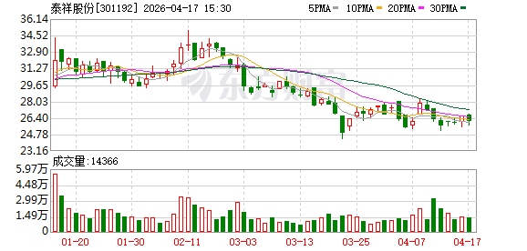 4月17日,泰祥股份(301192)公布2025年年报,公司营业收入为4.67亿元,同比上升10.5%;归母净利润为5367万元,同比上升28.3%;扣非归母净利润为4714万元,同比上升42.4%;经营现金流净额为7993万元,同比下降27.3%;EPS(全面摊薄)为0.54元。